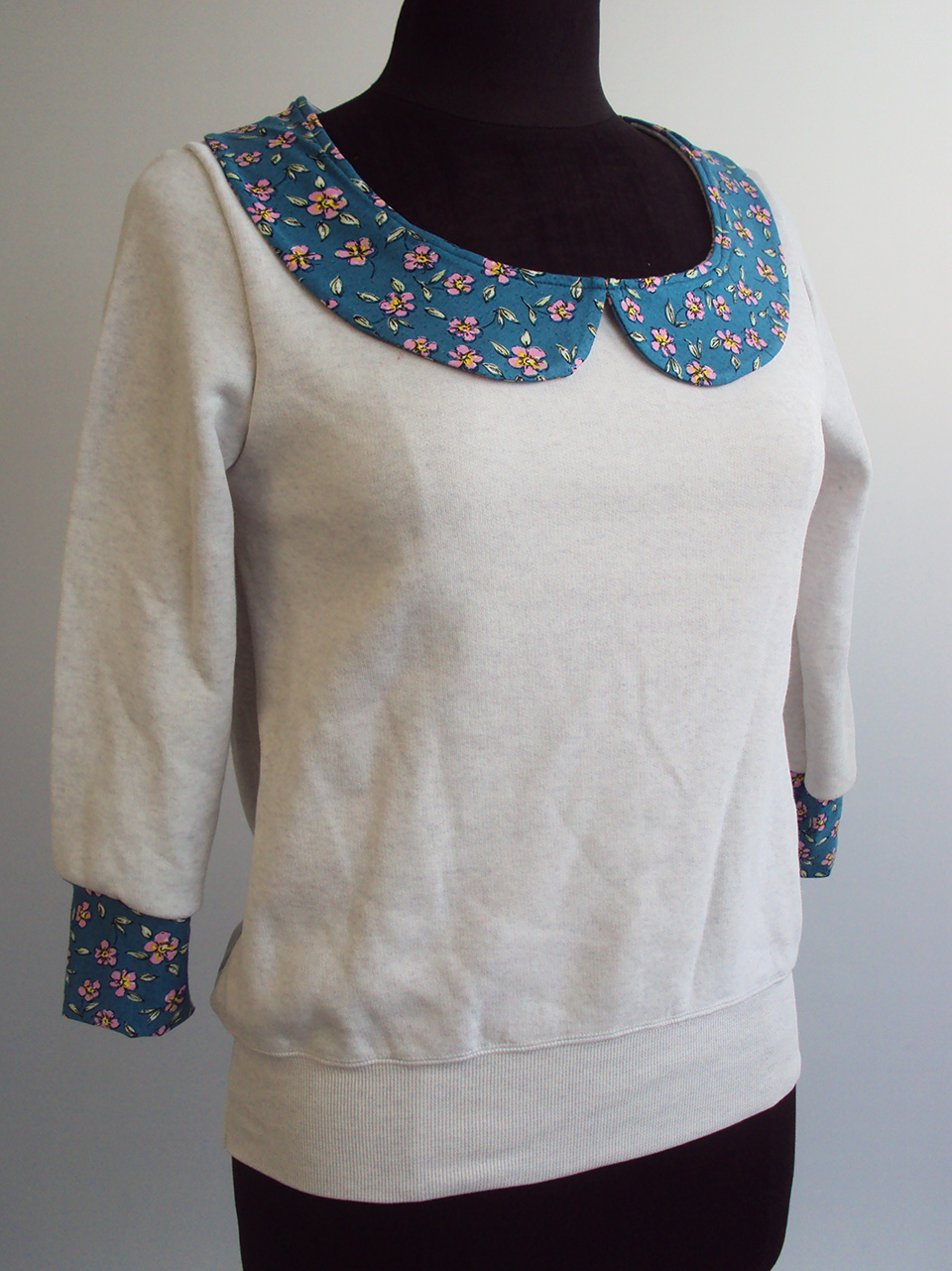 A peter pan collar is appropriate for any season. Awesome job on the refashion. That's very impressive that you cut down the front and back panels of a men's sweatshirt. You can't even tell!