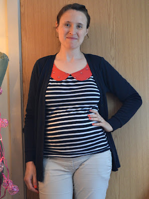 - More bottoms: more fun. Thanks to some very generous friends lending me lots of pairs of maternity jeans and trousers, I currently have more 'bottoms' to choose from each morning than I've ever had. I realise that I usually dress 'bottom up' in that I'll choose which jeans, trousers or skirt I want to wear that day and then think what I've got to go with them that's clean. Having so many pairs at my disposal has allowed me the pleasure of dressing 'top down': picking the 'fun' part of the outfit first because I'm bound to have something to dress my legs in that will work with the top part that I've selected. The well-fitting trouser quest I was on last year (you can jump into the saga in this post) really was a worthy endeavour, and one I should get back on when my post-pregnancy body decides what shape and size it should remain at for a while.