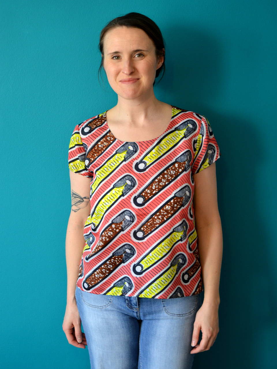 What a lovely top and looks great. I am in love with that fabric. The print is amazing. I do love the whacky things that they print on wax fabric. Xx