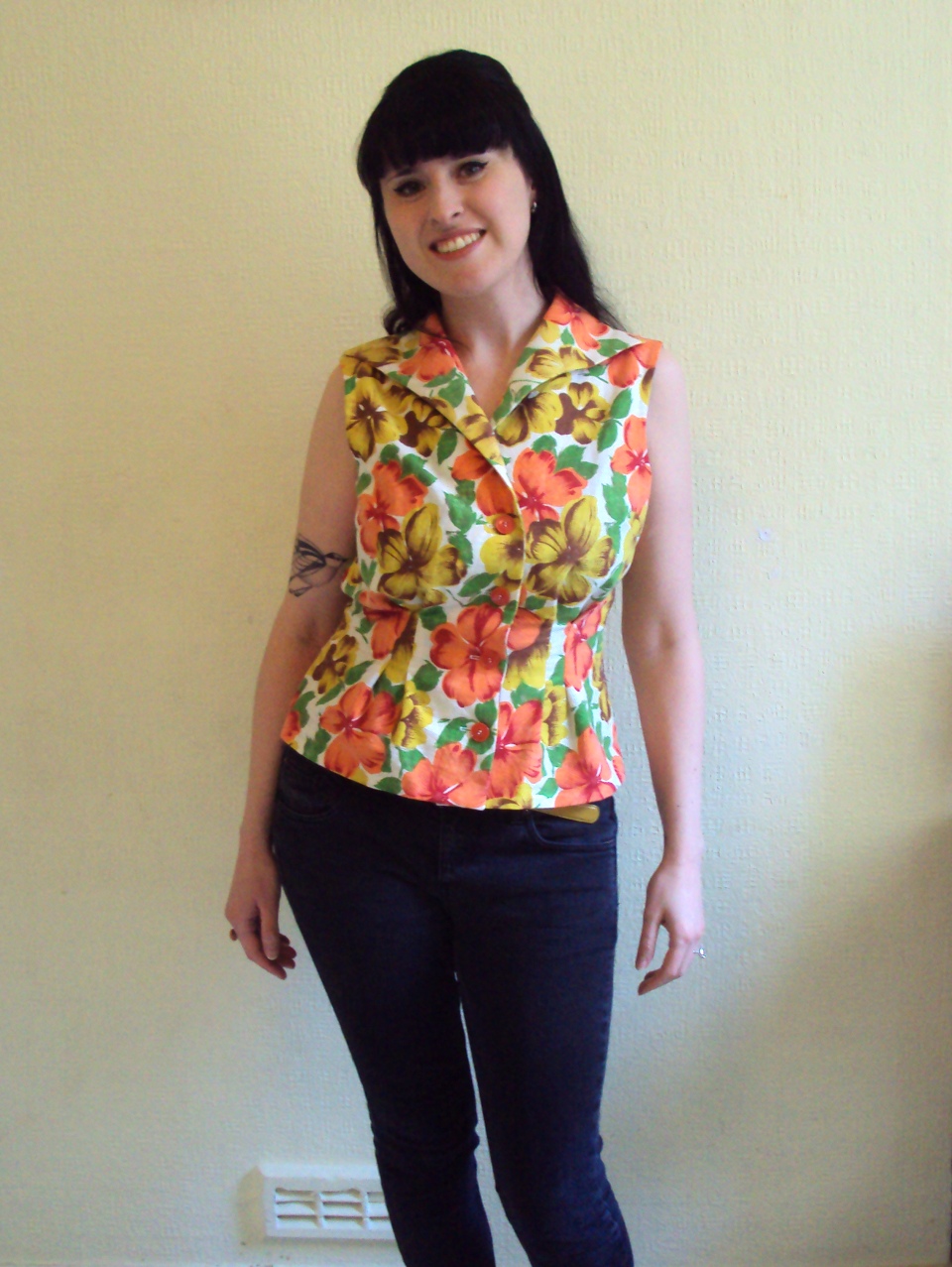 I finally got round to making up the blouse I'd confessed to having cut out months ago in my recent Sewing Pattern Hoard post. I made View B, a sleeveless winged collar blouse with tucks for shaping at the waist. I was drawn to it because I could imagine Rizzo from Grease wearing it, but I also feel it's something Kitty & Daisy might rock too. I'm guessing it's mid-1950's, but I don't have it with me and I can't be arsed to research it.