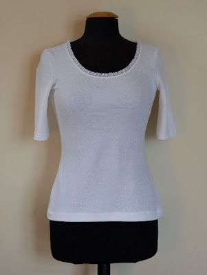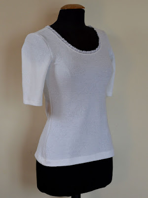 This is my third go at the Tilly and the Buttons Agnes knit top pattern, and I'm confident that it won't be my last. The Agnes top is actually very similar to my early attempts at self-drafting a knit top pattern, but it's just so perfect that I doubt I'll ever return to my self-drafted efforts again. Having learnt from the fit of my previous versions, this time I used a size 3, grading out from the armpit to a size 4 for the rest of the sleeve. I knew this would result in a snug fitting garment, but as this is intended to be underwear, that was what I was looking for. When I say snug, I mean snug: I not sure you're ready for this jelly so I avoided sharing a modelled shot of this garment!