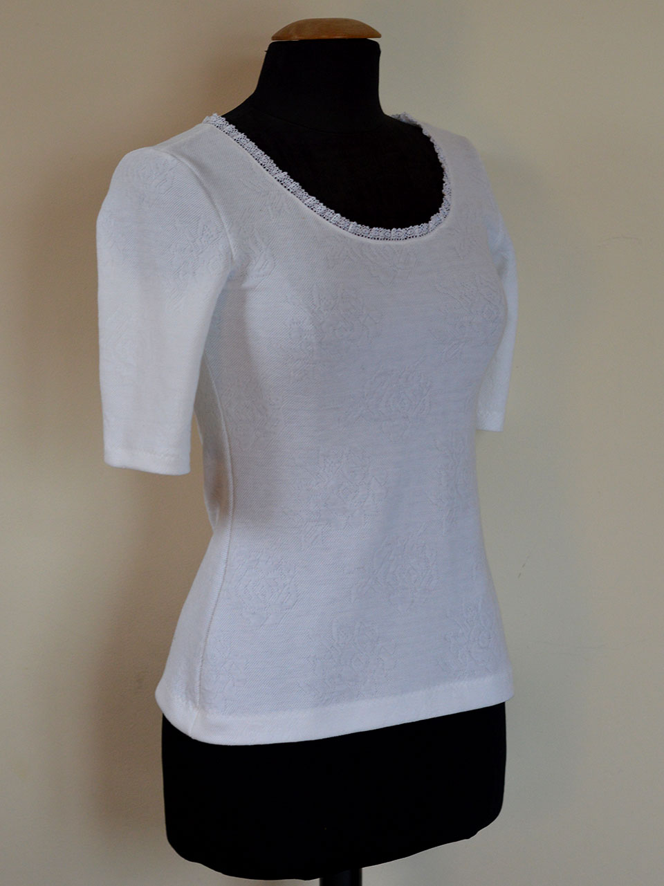 I don't know what the hell it is, or even how to adequately describe it, other than it's fairly thick with a floral design/texture somehow knitted into it. Any ideas? Basically, it looks like its designed for thermal garments. Hey, I never claimed to be reinventing the wheel here. When I realised that a warm layerable under-t-shirt would help my current clothing selection limp along 'til Spring, I knew where to look.