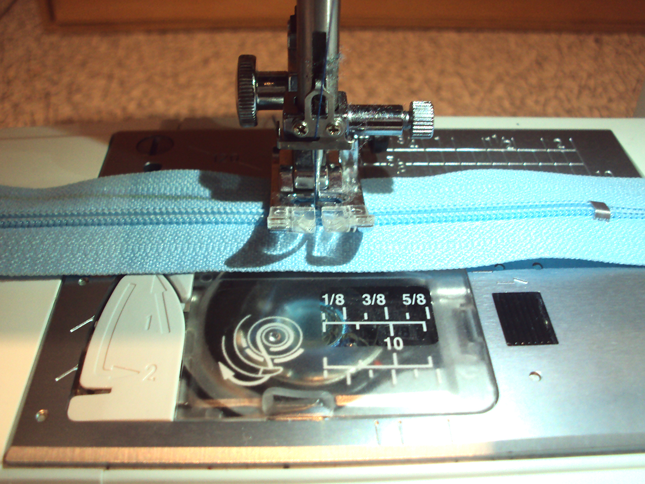 machine (I like to use a 90/14 needle for this process). Position the zip
